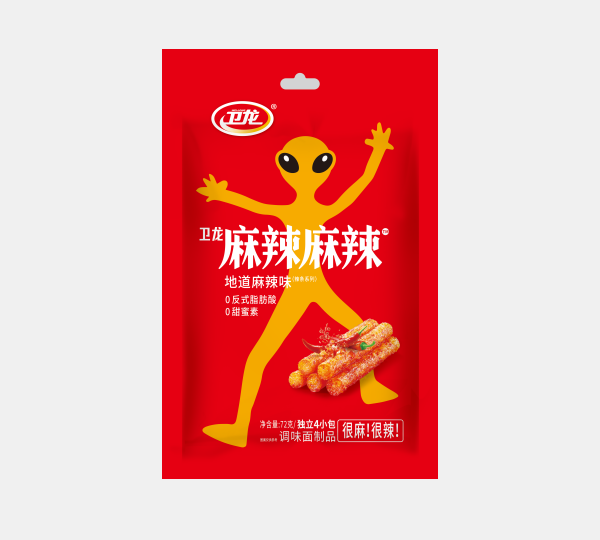 精选优质小麦,品质稳定,麦香浓郁; 一级大豆油,味道纯正,颜色透亮; 0反式脂肪酸 、0甜蜜素; 挤压熟制,非油炸,蓬松劲道,每一口都软糯多汁; 爱辣之选,麻辣过瘾。